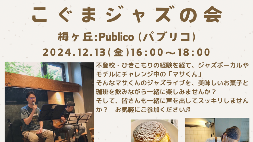 世田谷エリア 不登校の親の会の忘年会&ジャズライブ今Continue reading2024,12,13 こぐまジャズライブ