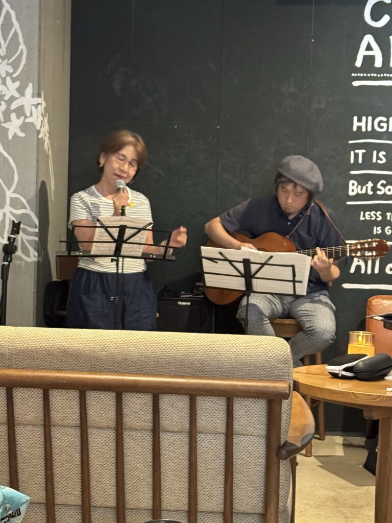 2025,7,26 cafe live in Komazawa Posted-on2025年7月26日2025年11月8日By lineBylinemieko-yuasa 今月もやって来ました!カフェライブ!みんなの歌う意欲に私も影響を受けます!音楽が歌うことが、音楽を聴くことが生活に溶け込んだら素敵だなーと活動を続けます🎶これからもよろしくお願い致します
