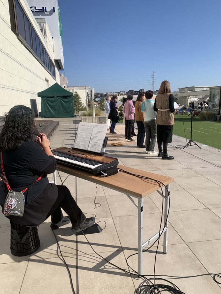 11/30 初参加となる「街レコフェス!」田園都市線沿線のお稽古事教室が集まって発表、展示、ワークショップなどを行うフェスティバルです。たまプラーザの東急にあるコモンフィールドにて開催です! 私たち「Groovys Music Studio」は、ステージ部門、発表お披露目で参加しました。暑いくらいの雲ひとつない青空晴天に恵まれ、みんな楽しく歌うことができました🎶